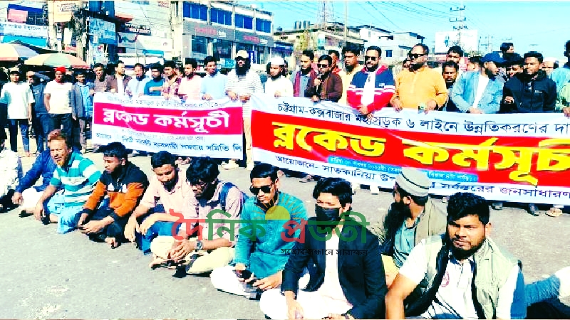 ছয় লেনের দাবিতে চট্টগ্রাম-কক্সবাজার মহাসড়ক অবরোধ।